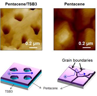 [아시아경제 정종오 기자]플렉서블(flexible) 디스플레이, 전자 피부, 고성능 센서 등 차세대 유연 전자소자 제작에 크게 활용될 '고성능 유기 박막 트랜지스터'가 개발됐다. 이번 연구는 웨어러블(wearable) 전자기기 구현의 핵심인 유기반도체로 구성된 전자소자의 성능을 크게 향상시킬 뿐 아니라 나노 다공성 구조를 지닌 유기반도체 박막 제조가 가능하다는 것을 보여줘 관심을 모으고 있다. 유기반도체는 저온 공정이 가능하고 유기반도체로 박막 트랜지스터를 제작할 경우 구부리거나 구겼을 때에도 트랜지스터의 특성이 그대로 유지돼 유연한 전자기기의 핵심적 소재로 전 세계적으로 많은 관심을 받아왔다. 기존의 유기반도체는 전하의 이동도가 낮아 유기반도체를 활용한 전자소자의 동작속도나 전류 공급에 한계가 있었다. 유기반도체를 활용한 고성능 트랜지스터 제작이나 전자회로 구현에 많은 제약이 따른다. 연구팀은 기존 유기반도체 소재로 널리 사용돼 온 물질(펜타센)을 새로 고안한 유기박막 이종접합(서로 다른 유기물 간의 접합)에 적용해 기존의 전하 이동도보다 약 4배 향상된 결과를 얻었다. 이러한 전하 이동도는 고성능 유기발광 다이오드(OLED)를 구동시킬 수 있는 수준이다.연구팀은 또 유기반도체 층에 수백 나노미터 크기의 구멍이 뚫려있는 다공성 박막구조를 제조했다. 특히 다공성 구조에도 불구하고 결정성(고분자화합물 등에서 결정을 이루는 부분의 비율)이 매우 높은 유기반도체 박막을 제조했을 뿐 아니라 이를 활용해 극소량의 물질도 빠르게 검출 가능한 고성능 화학센서도 함께 구현했다. 이번 연구는 미래창조과학부가 추진하는 글로벌프런티어사업 '나노기반소프트일렉트로닉스연구단'의 지원으로 포스텍 화학공학과의 조길원, 오준학 교수팀이 공동연구로 진행했다. 연구결과는 네이처 자매지인 '네이처 커뮤니케이션즈'(Nature Communications) 8월 26일(논문명 : Enhancing 2D growth of organic semiconductor thin films with macroporous structures via a small-molecule heterointerface)에 실렸다. 조길원 교수는 "이번 기술은 기존에 널리 사용돼 온 유기반도체 소재에 적용 가능하다"며 "유기반도체 박막층 구조 변화와 유기 트랜지스터 성능 향상을 함께 구현 할 수 있는 새로운 유연 전자기기 제조 방법을 제시한 것"이라고 말했다. 정종오 기자 ikokid@asiae.co.kr<ⓒ세계를 보는 창 경제를 보는 눈, 아시아경제(www.asiae.co.kr) 무단전재 배포금지>