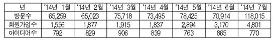 [아시아경제 권용민 기자] 이달로 문을 연지 1년이 되는 창조경제타운이 양적 성장에도 질적 정체를 벗어나지 못하고 있다. 국민의 아이디어를 실현할 수 있는 실질적인 방안이 강구돼야 한다는 지적이다. 3일 미래창조과학부에 따르면 창조경제타운은 지난해 9월30일 서비스 개시 이후 지난 7월 말까지 총 81만7696명이 방문, 3만5567명의 회원을 확보했다. 월별로 보면 지난 1월에는 6만5259명의 방문자수를 기록, 3월에는 7만5000여명을 넘어섰다. 7월에는 11만8000여명까지 치솟았다. 2개 분기에 2배 가깝게 늘어난 것이다. 월별 회원가입수도 3배 이상 늘었다. 1분기 1000~1900여명의 회원 가입이 이뤄졌지만 7월에는 한달간 4801명이 창조경제타운의 회원이 됐다. 이처럼 외형적으로 성장한 배경에는 금융 상품이 있다. 미래부는 지난 5월 KB국민은행과 'KB창조금융적금'을 출시했다. 창조경제타운을 통해 아이디어를 제안하고 발전시키면 단계에 따라 우대금리를 적용하는 상품이다. 회원 가입을 하는 것만으로 0.3%, 아이디어를 등록하면 0.2%, 우수 아이디어로 채택되면 0.5%의 우대금리가 적용된다. 7~18세 학생들에게는 0.2%가 추가로 지급된다. 상품이 출시된 5~7월 방문수와 회원가입자가 늘었다는 점에서 금융상품이 어느 정도 주효한 것이다. 지금까지 KB창조금융적금에 가입한 수는 2만2166명이다.창조경제타운을 통해 사업화에 성공해 매출을 일으키고 있는 상품들도 있다. 환자가 규칙적으로 약을 복용할 수 있도록 도와주는 특허 약병은 지난해 10월 아이디어가 제안돼 11월 시제품을 제작, 올해 4월에 마케팅에 착수해 지난 5월 온라인 쇼핑몰에 입점했다. 일각에서는 방문자 수나 회원 수만 늘려서는 원래 취지대로 국가 경쟁력을 도약시킬 수 없다는 지적도 제기된다. 핵심인 '창의적인 아이디어' 제안 건수는 제자리에 머물러 있기 때문이다. 지난 1월 아이디어 제안 건수는 792건, 3월 906건까지 증가했다가 지난 7월말에는 다시 770건으로 떨어졌다. 업계 관계자는 "회원 숫자를 늘리는 것에 그치지 않고 실제로 창업할 수 있는 아이디어를 독려하는 게 중요하다"고 전했다.이에 대해 미래부 관계자는 "창조 아이디어 제안 수는 창조경제타운과 연계돼 진행된 공모전 아이디어 제안 수가 반영되지 않은 수치"라며 "8월 '신기해', '창조 아이디어 경진대회' 등 앞서 진행된 공모전의 아이디어가 등록되면서 아이디어 제안 수는 늘어나고 있다"고 강조했다.이어 "창조경제타운은 아이디어 사업화 지원 온라인 플랫폼으로서 방문자들이 우선적으로 늘어야 네트워크 효과에 의해 활성화되는 플랫폼 발전 과정을 거치고 있다"고 덧붙였다. 구글이 일정 수 이상의 플랫폼 참여자를 확보한 뒤 플랫폼으로서 성공을 거둔 것과 같은 것이라는 설명이다.권용민 기자 festym@asiae.co.kr<ⓒ세계를 보는 창 경제를 보는 눈, 아시아경제(www.asiae.co.kr) 무단전재 배포금지>