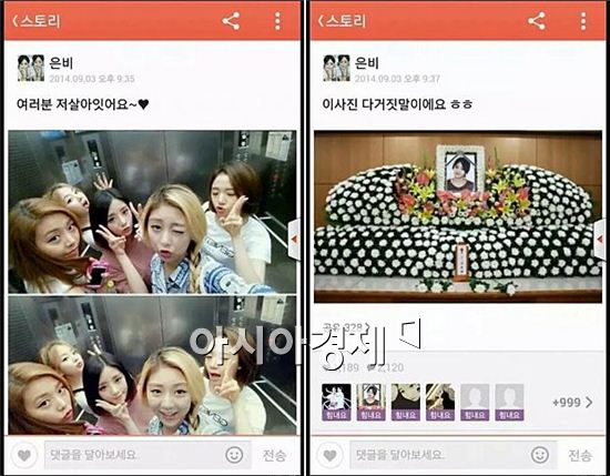 카카오스토리에 올라온 故 고은비 모욕글 [사진=카카오스토리 캡처]