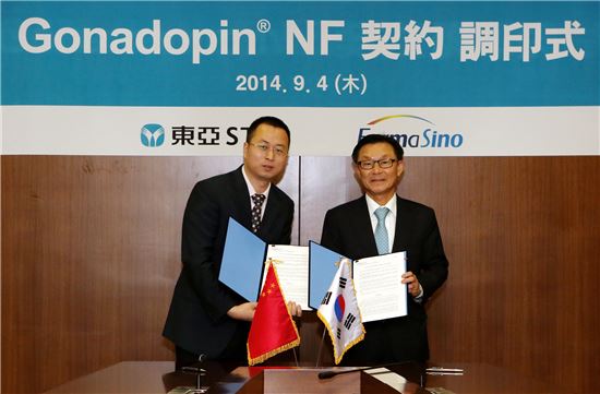 [아시아경제 이창환 기자] 동아에스티는 4일 오후 서울 동대문구 용신동 본사에서 중국 파마시노사와 불임치료제 ‘고나도핀NF(New Formulation)’의 중국 내 독점판매계약을 체결했다고 5일 밝혔다. 계약 행사는 박찬일 동아에스티 사장과 옌 리보(Yan Libo) 파마시노 사장 및 양사 관계자들이 참석했다. 파마시노는 중국 난징(南京)에 본사를 두고 원료 및 완제의약품의 수출입과 판매를 하는 제약사다.이번 계약으로 동아에스티는 제품 발매 후 10년간 ‘고나도핀NF’를 파마시노에 공급하게 되고 파마시노는 ‘고나도핀NF’의 중국 내 독점판매권을 갖게 된다. 파마시노는 ‘고나도핀NF’의 제품 등록을 위해 내년 상반기 중국 국가식품약품감독관리총국(CFDA)에 제품 임상 허가신청서를 제출하고, 임상과 제품 허가 절차를 거쳐 2020년 상반기 발매할 예정이다.‘고나도핀NF’는 불임환자의 치료를 목적으로, 보조생식술 실시 중 다수의 난포를 성숙시키기 위해 과배란유도에 사용하는 난포자극호르몬제이다. 지난 2006년 발매한 유전자재조합 바이오의약품 ‘고나도핀’의 인간 혈청 알부민을 제거한 개량형 제품이다.중국의 불임치료제 시장규모는 2013년 약 1500억 원으로 매년 20% 이상 큰 폭으로 성장하고 있다. 또한 올해부터 중국의 출산정책이 1가구 2자녀 정책으로 완화되고, 가임 인구의 고령화 추세로 불임시장은 확대될 것으로 예상되고 있다.박찬일 사장은 “국내 제약사가 매년 큰 폭의 성장을 거듭하고 있는 중국시장에 성공적으로 진출하기 위해서는 신약의 연구개발 역량과 우수 의약품의 품목경쟁력이 중요한 핵심 경쟁요소”라며 “동아에스티는 자가개발의약품, 바이오의약품 등 다양한 포트폴리오를 바탕으로 중국 시장 진출에 박차를 가하겠다”고 말했다.한편 동아에스티는 2011년 상해의약집단과 발기부전치료제 ‘자이데나’ 독점 판매 계약, 2012년 루예의약집단과 당뇨병신약 ‘DA-1229’ 아웃 라이선싱 계약, 글로리아사와 항암제 ‘모노탁셀’ 기술이전 계약, 2013년 토썬사와 B형간염치료제 원료의약품 ‘엔터카비어’ 수출계약, 수저우시노사와 결핵치료제 ‘크로세린’ 독점판매계약을 체결하는 등 중국시장 진출에 노력하고 있다. 이창환 기자 goldfish@asiae.co.kr<ⓒ세계를 보는 창 경제를 보는 눈, 아시아경제(www.asiae.co.kr) 무단전재 배포금지>