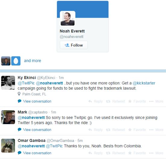 트위픽 창업자 노아 에버렛의 트위터 계정에 트위픽 서비스 종료에 대한 안타까움, 그동안의 고마움을 표현하는 글들이 줄을 잇고 있다. <br />