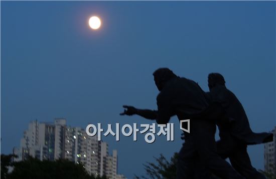 추석인 8일은 전국이 대체로 맑은 가운데 광주시 서구 치평동 상무지구 5.18기념공원에 슈퍼 보름달이 떴다. 더도말고 덜더말고 슈퍼문만 같아라 소원빌어보세요.