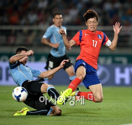 [고양=아시아경제 김현민 기자] 축구 국가대표팀 이청용이 8일 경기도 고양종합운동장에서 열린 우루과이와의 평가전에서 상대 수비를 뚫고 공격하고 있다. 김현민 기자 kimhyun81@asiae.co.kr<ⓒ세계를 보는 창 경제를 보는 눈, 아시아경제(www.asiae.co.kr) 무단전재 배포금지>