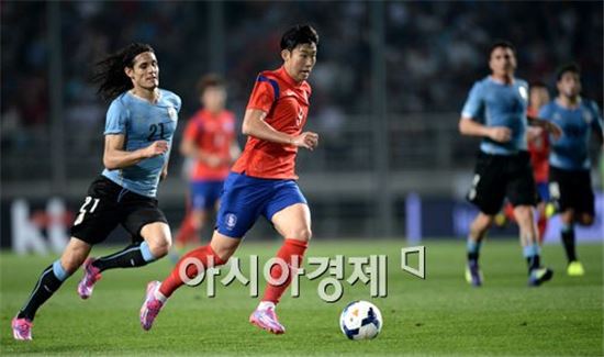[고양=아시아경제 김현민 기자] 축구 국가대표팀 손흥민이 8일 경기도 고양종합운동장에서 열린 우루과이와의 평가전에서 상대 수비를 뚫고 공격하고 있다. 김현민 기자 kimhyun81@asiae.co.kr<ⓒ세계를 보는 창 경제를 보는 눈, 아시아경제(www.asiae.co.kr) 무단전재 배포금지>