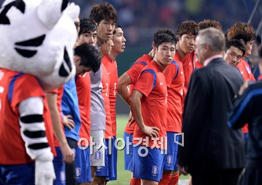 [고양=아시아경제 김현민 기자] 축구 국가대표팀 이근호가 8일 경기도 고양종합운동장에서 열린 우루과이와의 평가전을 마치고 슈틸리케 신임 감독과 인사를 나누고 있다. 김현민 기자 kimhyun81@asiae.co.kr<ⓒ세계를 보는 창 경제를 보는 눈, 아시아경제(www.asiae.co.kr) 무단전재 배포금지>