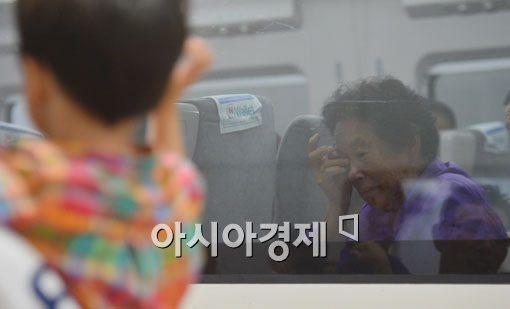 [아시아경제 백소아 기자] 추석연휴 막바지인 9일 서울 중구 서울역에서 고향집으로 돌아가기 위해 기차에 오른 할머니가 가족들과 인사를 나누다가 눈물을 흘리고 있다.백소아 기자 sharp2046@asiae.co.kr<ⓒ세계를 보는 창 경제를 보는 눈, 아시아경제(www.asiae.co.kr) 무단전재 배포금지>