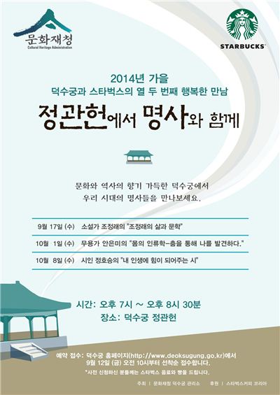 스타벅스커피가 '덕수궁 정관헌에서 명사와 함께' 행사를 후원한다.