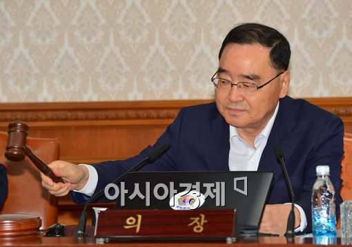 [아시아경제 백소아 기자] 정홍원 국무총리가 11일 서울 세종로 정부서울청사에서 열린 국무회의에서 의사봉을 두드리고 있다.백소아 기자 sharp2046@asiae.co.kr<ⓒ세계를 보는 창 경제를 보는 눈, 아시아경제(www.asiae.co.kr) 무단전재 배포금지>