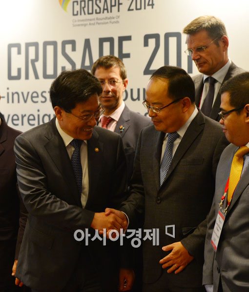 [아시아경제 백소아 기자] 윤상직 산업통상자원부 장관(오른쪽부터 세 번째)이 12일 서울 강남구 그랜드인터콘티넨탈호텔에서 열린 글로벌 공공펀드 공동투자협의회에서 참가자들과 인사를 나누고 있다.백소아 기자 sharp2046@asiae.co.kr<ⓒ세계를 보는 창 경제를 보는 눈, 아시아경제(www.asiae.co.kr) 무단전재 배포금지>