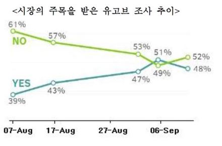 [아시아경제 구채은 기자] 18일 열리는 스코틀랜드 분리독립 주민투표 향방이 유럽금융시장에 최대복병이 될 것이라는 분석이 나왔다. 13일 국제금융센터는 '스코틀랜드 독립투표에 따른 시나리오별 영향 점검' 보고서에서 "독립이 찬성될 경우 금융시장은 상당한 불안감에 시달릴 수 있다"고 말했다. 이 보고서는 분리독립이 찬성되면 경제 불확실성과 혼란 우려가 커진다고 봤다. 스코틀랜드가 파운드화를 쓰지 않게 되면 영국의 정치적 경제적 위상이 축소돼 파운드 가치부터 떨어질 수 있다.분리 이행 과정도 문제다. 당장 기업 투자가 지연되고 가계 심리도 위축될 수 있다. 접경 지역 물가가 오르고 영국 전역의 경기 둔화도 점쳐진다. 글로벌 시장 영향도 부정적이다. 영국의 유로존과 미국 수입 수요 감소로 글로벌 경기가 둔화되고 파운드화 가치가 내려 영국 이탈 자금의 재배치로 시장 혼란이 가중될 수 있다. 해외 투자은행(IB)도 독립이 성사될 경우 상당한 경제적 후폭풍이 있을 것으로 봤다. 시티은행은 "분리독립이 시행되면 영국 금융시장 불확실성이 커지고 단기변동성이 확대되고 이 악재는 상당기간 지속될 것"이라고 예상했다. 분리독립에 대한 찬반 여론은 팽팽하게 갈리고 있다. 여론조사 기관 유고브가 9월2~5일 조사한 결과에 따르면 찬성비율이 51%를 기록해 처음으로 반대비율을 웃돌았다. 찬성 여론은 5월 이후 40% 선에서 주춤했으나 8월중 있었던 TV 토론회가 복병이 돼 급등하는 모양새다. 가디언에 따르면 토론회 이후 새먼드 스코틀랜드 수석장관(찬성) 토론내용이 달링 전 영국 재무장관(반대)보다 나았다는 의견이 71%에 달했다. 이에 따라 유고브가 9~11일 실시한 재조사에는 독립반대가 52%로 우세했다. 이지현 연구원은 "독립안이 부결된다 해도 스코틀랜드 리스크와 이에 대한 영란은행의 대책에 따라 이슈가 재부각될 수 있다"고 진단했다.한편 유럽에는 현재 분리독립 이슈가 주요 사안으로 부상되고 있다. 우크라이 동남부 지역을 비롯해 영국 웨일스 북아일랜드, 스페인 카탈루냐, 벨기에 플랑드르 지역이 대표적이다. 구채은 기자 faktum@asiae.co.kr<ⓒ세계를 보는 창 경제를 보는 눈, 아시아경제(www.asiae.co.kr) 무단전재 배포금지>