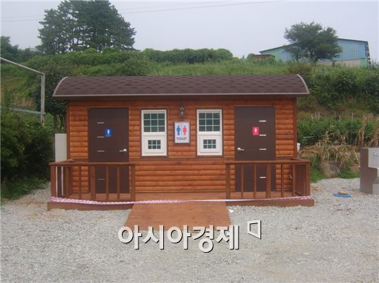 완도 최고봉인 상황봉(644m) 주요 등산로인 완도읍 대구리 등산로 입구에 설치된 공중화장실<br />