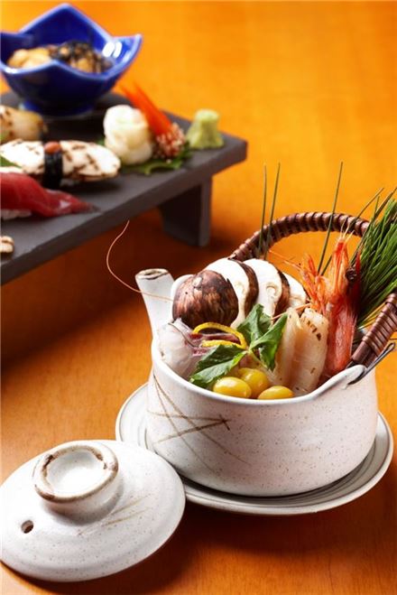 [아시아경제 임혜선 기자] JW메리어트 호텔 서울 일식당 미카도와 중식당 만호에서는 자연송이를 이용한 이색 요리를 준비했다. 일식당 미카도에서는 다음달 17일까지 자연 송이의 맛과 향을 다양한 메뉴를 느낄 수 있는 두 가지 코스 메뉴와 4가지 단품요리를 선보인다. 코스 메뉴는 자연송이 소스를 곁들인 교토스타일의 전채요리 5~6종, 도로와 흰살 생선 사시미, 병어와 장어 데리야키, 단풍 모양 새우살과 야채튀김,특선 모미지 야키스시 5종과 마키, 송이 우동, 홍시맛차무스와 계절 과일로 이루어진 모미지 스시 코스 와 전채 요리 6종, 자연송이 해산물 주전자찜, 5종의 제철 사시미, 자연송이와 한우 데리야키, 자연송이와 가을 채소 튀김, 자연송이 덮밥, 디저트가 포함된 자연 송이 코스가 준비된다. 소나무 향을 살린 자연송이 덮밥, 자연송이 스키야키, 자연송이와 활 전복 버터구이, 자연송이 구이등 일품 요리도 마련됐다. 코스 요리는 각각 14만5000원, 16만5000이다. 일품 요리는 6만5000원부터 12만원(세금 및 봉사료 포함)이다. 중식당 만호에서는 자연송이를 곁들인 두 가지 코스 메뉴를 준비했다. 전복냉채, 약선자연송이 해삼스프, 송이소스의 쇠고기안심, 바닷가재 마늘찜, 송이게살볶음, 송이 탕면, 계절과일과 제비집소스가 포함된 A코스와 오리알 두부무침, 자연송이와 마른관자 소라스프, 해삼전복, 야채 활우럭찜, 닭고기와 아스파라거스 볶음, 자연송이볶음면, 제비집 배 찜으로 이루어진 B코스가 있다.약선 자연송이 해삼스프, 송이 게살 볶음, 송이 탕면, 빙탕제비집, 은이,배 찜 등 단품 메뉴도 마련된다. 코스 메뉴는 14만5000원, 18만원이며, 송이 탕면 2만5000원 등(모두 세금 및 봉사료 포함)이다. 임혜선 기자 lhsro@asiae.co.kr<ⓒ세계를 보는 창 경제를 보는 눈, 아시아경제(www.asiae.co.kr) 무단전재 배포금지>