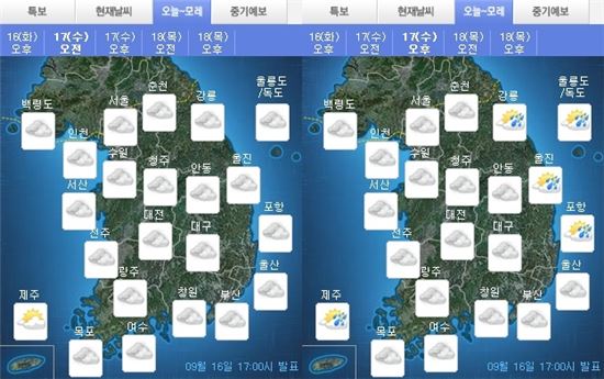 17일 전국 오전-오후 날씨(사진제공=기상청)