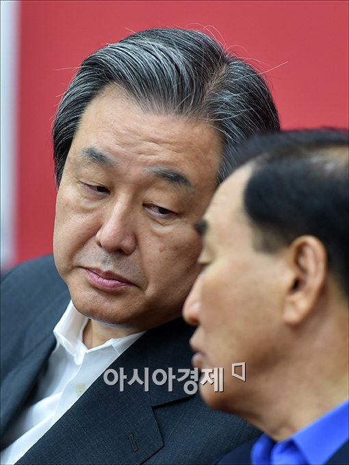 [아시아경제 윤동주 기자] 김무성 새누리당 대표(왼쪽)가 17일 서울 여의도 국회에서 열린 최고중진연석회의에서 이재오 의원과 이야기를 나누고 있다.윤동주 기자 doso7@asiae.co.kr<ⓒ세계를 보는 창 경제를 보는 눈, 아시아경제(www.asiae.co.kr) 무단전재 배포금지>