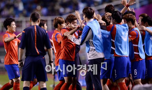 [포토]선제골 기쁨 나누는 AG 축구대표팀