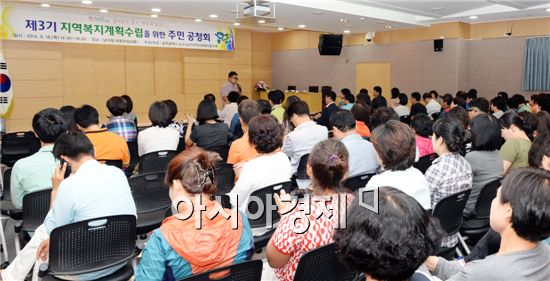 광주 남구(구청장 최영호)가 18일 오후 남구청 대회의실에서 ‘제3기 지역사회 복지계획 수립을 위한 주민공청회’를 개최했다. 이날 공청회에는 최영호 구청장을 비롯해 지역사회 복지계획에 관심을 갖고 있는 주민 등 300여명이 참석해 성황을 이뤘다. 사진제공=광주시 남구<br /> <br /> <br /> <br /> <br />