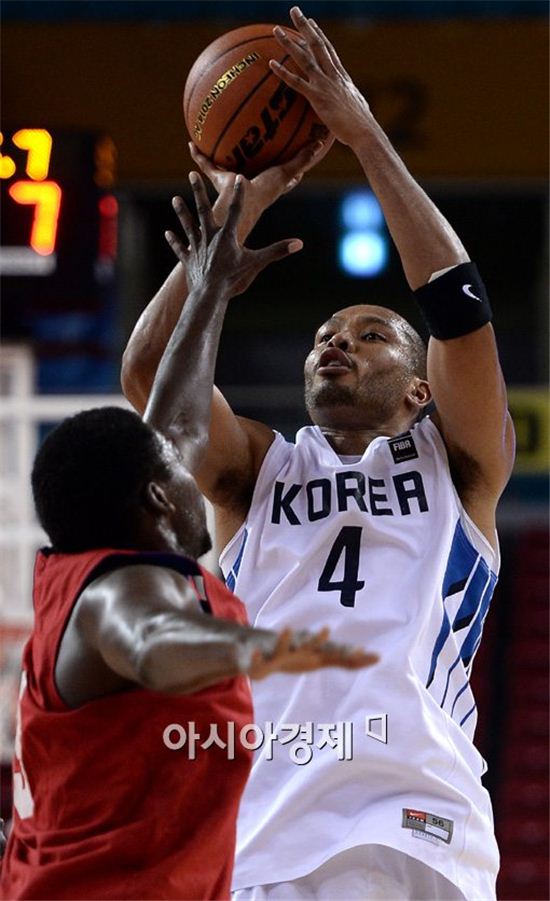 [인천=아시아경제 김현민 기자] 아시안게임 농구 국가대표팀 문태종이 18일 인천 삼산월드체육관에서 열린 외국인선수연합팀과의 연습경기에서 슛하고 있다.김현민 기자 kimhyun81@asiae.co.kr<ⓒ세계를 보는 창 경제를 보는 눈, 아시아경제(www.asiae.co.kr) 무단전재 배포금지>