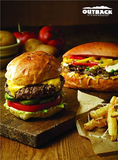 아웃백이 스테이크 패티를 포함한 홈메이드 방식의 프리미엄 스테이크하우스 버거 3종을 선보인다.