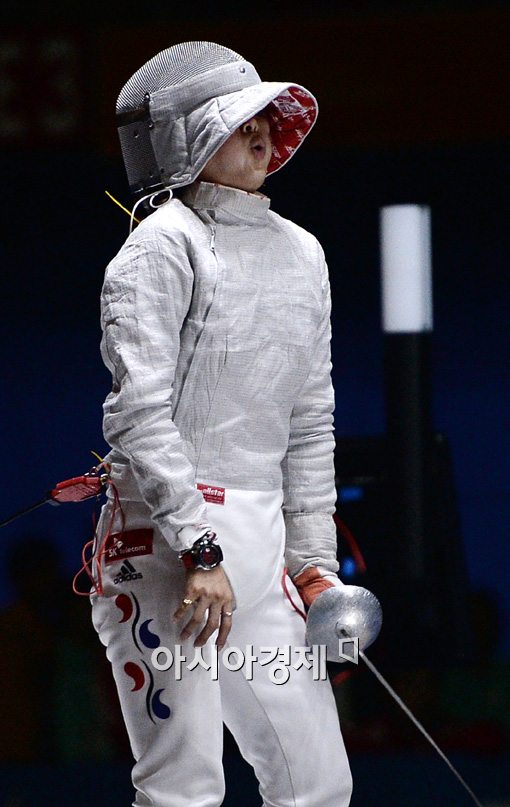 [고양=아시아경제 김현민 기자] 여자 펜싱 김지연이 20일 경기도 고양실내체육관에서 열린 제17회 인천아시안게임 펜싱 사브르 준결승전에서 중국의 센첸과 대결 중 숨을 고르고 있다. 김현민 기자 kimhyun81@asiae.co.kr<ⓒ세계를 보는 창 경제를 보는 눈, 아시아경제(www.asiae.co.kr) 무단전재 배포금지>
