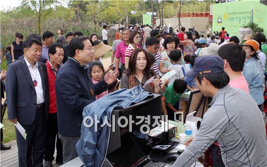광주 북구는 지난 20일 용봉동 비엔날레 전시관 옆 용봉초록습지 일원에서 송광운 북구청장을 비롯한 평생학습 동아리·기관·단체 등 82개 팀 3천여 명이 참여한 가운데 '2014 평생학습 페스티벌'을 개최했다. 사진제공=광주시 북구