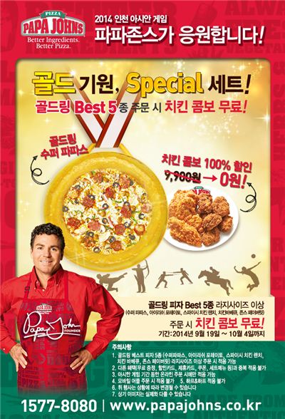 파파존스가 2014 아시안게임 금메달 기원 스페셜 세트를 선보였다.