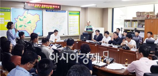 광주시 광산구(구청장 민형배)가 지난 19일 구 재난안전종합상황실에서 전시 국가동원업무의 성공적 수행 등을 위한 ‘2014년 3/4분기 중점관리자원 확인의 날’ 행사를 열었다. <br /> <br /> 이날 행사에서는 민·관·군에서 50여명이 참석해 전시 인적·물적 중점관리자원에 대한 합동점검을 실시하고, 관계 기관 간 긴밀한 협조체제를 다졌다. <br /> <br /> 송영석 민방위팀장은 “위기관리상황 대처능력을 향상하기 위해 중점관리자원 확인의 날 행사를 연 2회에서 4회로 확대했다”며 “한 치의 빈틈도 없는 전시·위기 대비태세를 위해 앞으로도 최선을 다하겠다”고 밝혔다.