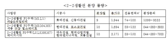 ▲세종시 2-2 생활권 연내 분양 물량