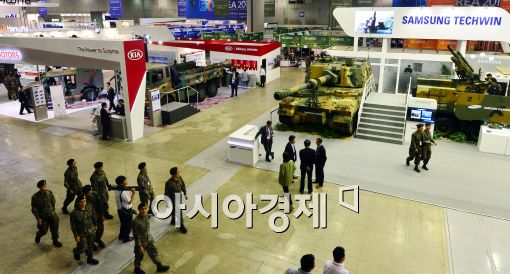 [아시아경제 최우창 기자] 24일 경기도 고양시 킨텍스에서 열린 2014 대한민국 방위산업전에서 관람객들이 다양한 무기 장비를 살펴보고 있다.최우창 기자 smicer@asiae.co.kr<ⓒ세계를 보는 창 경제를 보는 눈, 아시아경제(www.asiae.co.kr) 무단전재 배포금지>