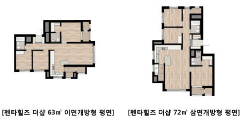- '판상형'만 고집할 필요 없다! … 실속과 개성 넘치는 평면 디자인 인기 - 밝고 넒은 거실에 다양한 수납공간, 가변형 벽체까지 내 맘대로 공간활용[아시아경제 박승규 기자] 환기, 통풍 등의 장점을 가진 판상형과 넓은 동간 거리와 녹지를 갖춘 타워형의 장점만을 모은 신개념 타워형 설계 아파트가 등장해 눈길을 끈다.성냥갑 아파트로 불리는 판상형 아파트는 통풍과 환기는 우수한 반면 외관이 단조롭고 동간 거리가 좁은데다 건폐율에 제한을 받는 단점이 있다. 반면 타워형아파트는 외관이 차별화되고 건물이 날씬해지기 때문에 그만큼 동간 거리도 넓어져 조망권과 일조권 확보가 용이하고 녹지율도 높아지는 장점이 있다.관련업계에 따르면 최근 소비자들의 쾌적한 주거환경에 대한 선호도가 갈수록 높아짐에따라 건설사들도 이에 발맞춰 단지 내 조경면적을 늘리고 도시 경관 개선 등을 강조하고 있다. 단지도 판상형과 타워형이 동시에 도입되는 혼합형 아파트가 늘고 있고, 이에 맞춰 평면 개발도 혁신적으로 다변화되어 선택 폭이 넓어지고 있는 것.부동산 전문가는 "최근 아파트 구매시장이 실수요로 재편되면서 수요층이 원하는 주거공간의 특성이 다양해졌다”며 “건설사들도 소비자들의 라이프스타일에 따라 평면을 선택할 수 있도록 이면, 삼면개방형, 판상형 등을 혼합해서 분양하는 추세"라고 말했다.이러한 상황 속에서 외관은 타워형의 모습을 하고 있지만 타워형의 단점을 보완함과 동시에 타워형에서만 나올 수 있는 특화된 내부 설계를 도입한 아파트들이 소비자들의 관심을 받고 있다.이면, 삼면개방형으로 설계해 개방감이 우수하고 채광과 환기도 가능할 뿐 아니라 다양한 수납공간은 물론 드레스룸, 알파룸 같은 공간을 확보하고 서비스 면적을 제공해 준다. 또한 가변형 벽체 도입 등 공간 구조 변경도 쉬워 개인의 취향에 따라 개성 넘치는 공간조성이 가능하다. 일부 저층을 제외하고는 조망권 확보도 판상형에 비해 한층 더 용이하다.여기에 최근 건설사들이 특이평면에 대한 마케팅을 강화하면서 가격인하 정책도 펴고 있어 실속까지 톡톡히 챙길 수 있는 아파트로 각광받고 있다. 이제는 더 이상 판상형만 고집할 필요가 없어진 셈이다. 포스코건설이 경상북도 경산시 펜타힐즈 C3블록에 공급예정인 ‘펜타힐즈 더샵’도 개방감과 공간활용도를 극대화한 이면, 삼면개방형 평면을 선보인다. '펜타힐즈 더샵'은 지하 2층, 지상 35층 아파트 9개동 총 1696가구로 전용 63~113㎡로 구성되며, 이중 실수요자들의 선호도가 높은 전용 85㎡이하 주택형이 1560가구로 전체 물량의 92%에 해당되는데, 그 중에서도 실속형의 이면, 삼면개방형 타입이 장점이 많아 실수요자의 이목이 쏠릴 것으로 보인다.63㎡ 타입은 이면개방형으로 남동, 남서향 위주로 설계돼 개방감이 우수하고, 주방을 'ㄱ'자로 설계해 공간감을 더욱 향상시켰고 드레스룸을 도입한 게 특징이다. 틈새면적을 선보이는 전용면적 72㎡에도 삼면개방형-타워형 설계를 적용, 워크인 현관수납장, 채광과 환기가 가능한 팬트리, 'ㄱ'자 주방 등 다양한 서비스 면적과 공간차별화를 적용할 예정이다.