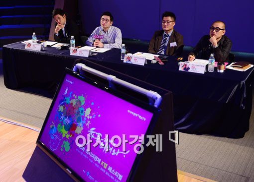 [아시아경제 백소아 기자] 24일 서울 광화문 kt올레스퀘어에서 아시아경제신문 주최로 열린 제3회 아시아경제 K앱 페스티벌에서 (왼쪽부터)황희승 잡플래닛 대표, 표철민 위자드웍스 대표, 고준석 중소기업청 지식서비스창업과장, 김봉진 우아한형제들 대표가 아이디어 공모전 프레젠테이션을 심사하고 있다.백소아 기자 sharp2046@asiae.co.kr<ⓒ세계를 보는 창 경제를 보는 눈, 아시아경제(www.asiae.co.kr) 무단전재 배포금지>