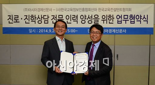 [아시아경제 백소아 기자] 23일 서울 중구 아시아미디어타워에서 이세정 아시아경제신문 대표(왼쪽)와 조훈 한국교육정보진흥협회 산하 한국교육컨설턴트협의회 회장이 MOU협약을 체결한 후 기념사진 촬영을 하고 있다.백소아 기자 sharp2046@asiae.co.kr<ⓒ세계를 보는 창 경제를 보는 눈, 아시아경제(www.asiae.co.kr) 무단전재 배포금지>