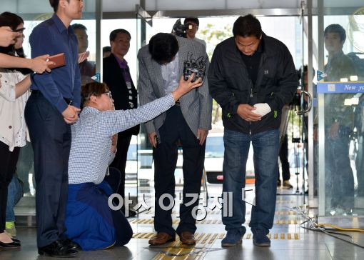 [아시아경제 최우창 기자] 대리기사 폭행 사건에 연루된 김병권 전 세월호 가족대책위 위원장, 김형기 전 수석부위원장이 25일 오후 서울 영등포경찰서에서 신고자 및 목격자와의 대질신문을 위해 출석한 가운데 고개숙여 인사하고 있다최우창 기자 smicer@asiae.co.kr<ⓒ세계를 보는 창 경제를 보는 눈, 아시아경제(www.asiae.co.kr) 무단전재 배포금지>