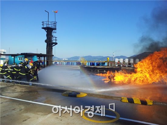"30일까지 여수석유화학단지 폭발 등 대비 훈련"[아시아경제 노해섭 기자]전라남도소방본부는 위험물 화재에 대한 이론적 이해와, 화재 양상의 다양화·대형화에 대비한 소방전술 능력을 높이기 위한 특수위험물 화재진압훈련을 오는 30일까지 6일간 실시한다.전남 소방공무원 200명을 대상으로 이뤄지는 이번 훈련은 여수석유화학단지의 각종 폭발, 화재사고 등에 대비하고 진압능력을 배양하기 위한 것이다. 위험물 및 가스화재에 대한 이론교육과 유류화재 및 탱크화재 진압 등 실제 진압훈련 시스템으로 편성됐다.특히 대형 유류화재를 경험하지 못한 신규 대원을 위주로 실시해 이들의 대응능력을 높여나간다는 방침이다. 또한 전남 소방본부는 2006년부터 GS칼텍스와 업무협약을 통해 지금까지 외근소방공무원 1천766명 중 1천437명(81.4%)이 훈련을 이수해 현장 활동에 임하고 있다.박청웅 전남도소방본부장은 “특수 위험물 화재 및 대형화재 양상의 완벽한 진압을 위해서는 1회성 행사가 아닌 지속적인 응용훈련을 통해 소방역량을 총결집시켜야 한다”며 이번 훈련의 배경을 설명했다.노해섭 기자 nogary@<ⓒ세계를 보는 창 경제를 보는 눈, 아시아경제(www.asiae.co.kr) 무단전재 배포금지>