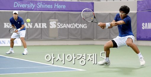 [인천=아시아경제 김현민 기자] 29일 인천 열우물테니스경기장에서 열린 아시안게임 테니스 남자 복식 한국(임용규-정현)과 인도(사케즈 미네니-사남 싱)의 결승전에서 정현이 공격하고 있다. 김현민 기자 kimhyun81@asiae.co.kr<ⓒ세계를 보는 창 경제를 보는 눈, 아시아경제(www.asiae.co.kr) 무단전재 배포금지>