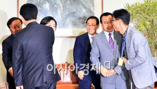 [아시아경제 최우창 기자] 새누리당 이완구 원내대표, 새정치민주연합 박영선 원대대표, 전명선 세월호 가족대책위 위원장 등이 30일 국회 운영위원장실에서 세월호 특별법 제정을 위한 회동을 갖고 대화를 하고 있다.최우창 기자 smicer@asiae.co.kr<ⓒ세계를 보는 창 경제를 보는 눈, 아시아경제(www.asiae.co.kr) 무단전재 배포금지>