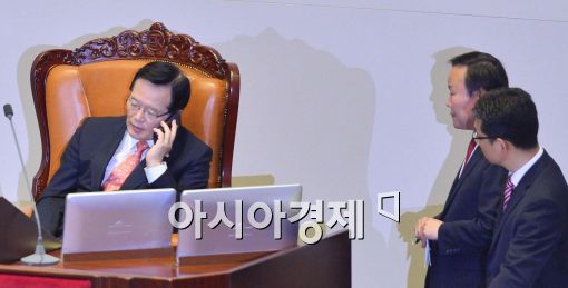 [아시아경제 최우창 기자]국회 본회의 개회가 예정된 30일 정의화 국회의장이 본회의장에서 잠시 통화를 하고 있다.최우창 기자 smicer@asiae.co.kr<ⓒ세계를 보는 창 경제를 보는 눈, 아시아경제(www.asiae.co.kr) 무단전재 배포금지>