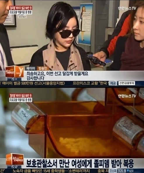 에이미 벌금 500만원 선고 [사진=연합뉴스TV 캡쳐]