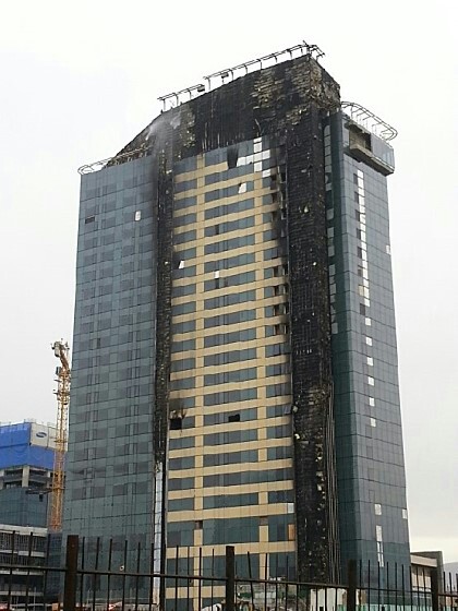 공사가 한창 진행 중인 몽골 울란바토르 샹그릴라호텔에 화재가 발생해 외벽 일부가 불에 탔다.