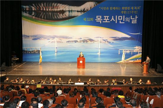 목포시가 개항 117주년을 맞아 1일 오전 9시 유달산 시민의 종각에서 시민의 종 타종식을 가진 뒤 10시부터 시민문화체육센터에서 ‘시민과 함께하는 행복한 목포’라는 주제로 ‘제52회 목포시민의 날’ 행사를 개최했다.이날 행사에는 목포지역 각급 기관·단체장, 역대 시민의 상 수상자, 시민 1200여명이 참석해 소통과 화합의 시간을 가졌다.‘2014 목포시민의 상’은 지역사회봉사부문에 김봉기(72) 천사랑나눔봉사단장, 교육문화부문에 오병인(70) 목포장학재단 이사장이 각각 수상했다.박홍률 목포시장은 기념사를 통해 “매년 맞는 기념일이지만 올해 시민의 날은 새로운 출발선 상에서 모든 시민의 마음과 뜻을 모아 시민이 행복한 새로운 목포 건설을 다짐하고 미래 청사진을 함께 만들어가는 의미 있는 날”이라고 밝혔다.박 시장은 이어 “우리에게는 미래가 있고 희망이 있다. 꿈을 실천할 힘과 열정과 의지가 있다. 더 멀리 내다보고 더 크게 생각하며 시민 모두가 함께한다면 이루지 못할 일은 없을 것”이라며 “미래를 위한 기틀을 마련해 나가는 데 25만 목포시민의 중지를 모아 소통과 화합의 시정을 펼쳐나가겠다”고 강조했다.오영주 기자<ⓒ세계를 보는 창 경제를 보는 눈, 아시아경제(www.asiae.co.kr) 무단전재 배포금지>