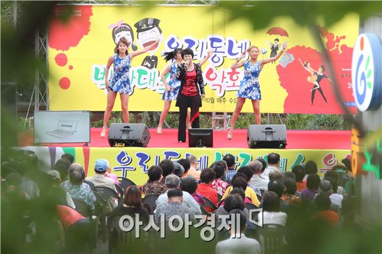 광주광역시 동구(청장 노희용)는 1일 동구장애인복지관 광장에서 '우리 동네 박장대소(拍掌大笑) 음악회'를 개최했다. 이날 공연은 초대가수의 노래공연에 이어 즉석 주민 노래자랑이 펼쳐졌다. 사진제공=광주시 동구
