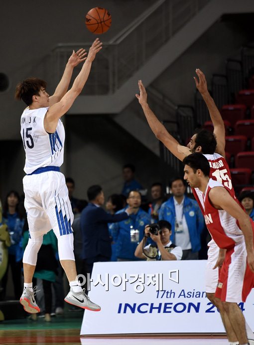 [인천=아시아경제 김현민 기자] 아시안게임 남자 농구대표팀 김종규가 3일 인천 삼산월드체육관에서 열린 이란과의 결승전에서 이란 하다디의 수비를 뚫고 첫 골을 성공시키고 있다.김현민 기자 kimhyun81@asiae.co.kr<ⓒ세계를 보는 창 경제를 보는 눈, 아시아경제(www.asiae.co.kr) 무단전재 배포금지>