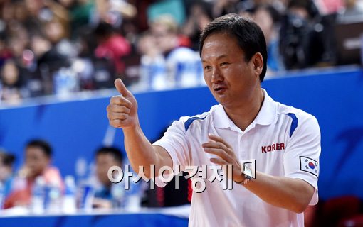 [인천=아시아경제 김현민 기자] 아시안게임 남자 농구대표팀 유재학 감독이 3일 인천 삼산월드체육관에서 열린 이란과의 결승전에서 선수들을 향해 엄지를 세우고 있다.김현민 기자 kimhyun81@asiae.co.kr<ⓒ세계를 보는 창 경제를 보는 눈, 아시아경제(www.asiae.co.kr) 무단전재 배포금지>