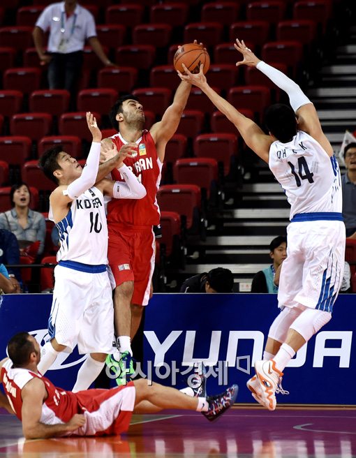 [인천=아시아경제 김현민 기자] 아시안게임 남자 농구대표팀 조성민과 오세근이 3일 인천 삼산월드체육관에서 열린 이란과의 결승전에서 상대와 리바운드를 다투고 있다.김현민 기자 kimhyun81@asiae.co.kr<ⓒ세계를 보는 창 경제를 보는 눈, 아시아경제(www.asiae.co.kr) 무단전재 배포금지>