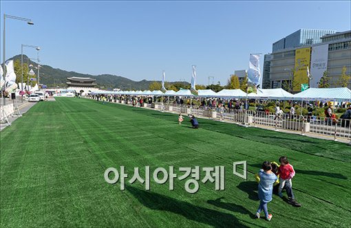 [아시아경제 윤동주 기자] 5일 정부서울청사에서 세종로공원까지 120m에 이르는 도로에 인조잔디가 깔려있다. 서울시는 '가을 소풍'을 테마로 어린이 가족이 도심에서 색다른 휴식과 즐거움을 느낄 수 있도록 하기 위해 이번 행사를 기획했다.윤동주 기자 doso7@asiae.co.kr<ⓒ세계를 보는 창 경제를 보는 눈, 아시아경제(www.asiae.co.kr) 무단전재 배포금지>