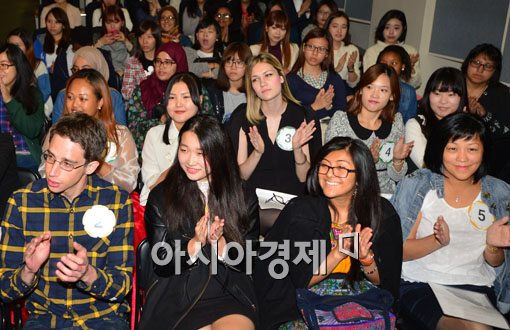 [아시아경제 백소아 기자] 6일 서울 서대문구 이화여자대학교에서 열린 제23회 외국인 한국어 말하기대회에서 언어교육원 학생들이 참가자들을 박수로 응원하고 있다.백소아 기자 sharp2046@asiae.co.kr<ⓒ세계를 보는 창 경제를 보는 눈, 아시아경제(www.asiae.co.kr) 무단전재 배포금지>