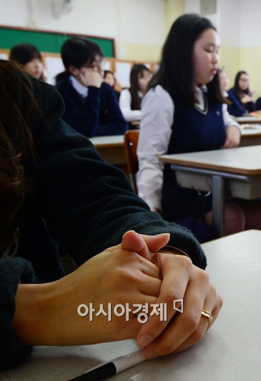 [아시아경제 백소아 기자] 수능 전 마지막 고3 전국연합학력평가가 실시된 7일 서울 종로구 풍문여자고등학교에서 학생들이 시험시작을 기다리고 있다.백소아 기자 sharp2046@asiae.co.kr<ⓒ세계를 보는 창 경제를 보는 눈, 아시아경제(www.asiae.co.kr) 무단전재 배포금지>