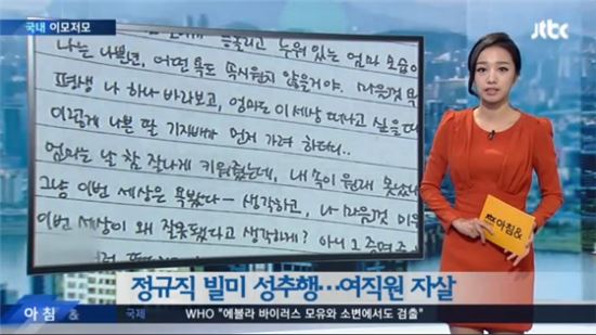 정규직 빌미 성추행까지 여직원 자살 [사진=JTBC 뉴스 캡쳐]