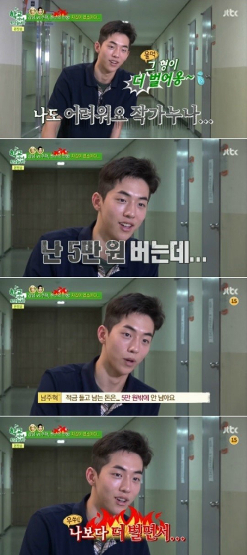 남주혁 "적금 들고 나면 남는 돈 5만원"…적금드는 남자였어?[아시아경제 온라인이슈팀]모델 남주혁이 자신의 수입에 대해 언급한 사실이 화제다. 4일 밤 방송된 종합편성채널 JTBC 예능프로그램 '학교 다녀오겠습니다'에서 강남이 남주혁과 함께 티격태격하는 모습으로 웃음을 자아냈다. 이날 강남은 함께 사는 기숙사 친구의 생일을 맞아 케이크를 사기 위해 남주혁과 함께 빵집에 들렀다. 강남은 케이크는 물론이고 자신이 먹고 싶은 빵까지 모두 담고 계산은 남주혁에게 넘겼다. 강남은 지갑을 분실했던 상태였다.이에 할 수 없이 남주혁은 빵값을 모두 계산했고 결과적으로 5일동안 15만원이라는 돈을 쓰게 됐다. 그것도 모자라 강남은 편의점에 들어가 음료수를 집어 들고는 남주혁에서 사달라고 조르기도 했다. 이에 남주혁은 "나도 어렵다. 강남이 형은 한 달에 10만원이나 번다더라. 나는 적금들고 하면 남은 돈은 5만원이다. 난 5만원 번다"고 작가를 향해 사정을 토로해 웃음을 자아냈다. 남주혁 용돈 소식을 접한 누리꾼들은 "남주혁, 돈 많이 벌 것 같은데", "남주혁, 의외로 소박하네", "남주혁, 속이 타들어갔겠네", "남주혁, 용돈 5만원 진짠가?" 등의 반응을 보였다.온라인이슈팀 issue@asiae.co.kr<ⓒ세계를 보는 창 경제를 보는 눈, 아시아경제(www.asiae.co.kr) 무단전재 배포금지>