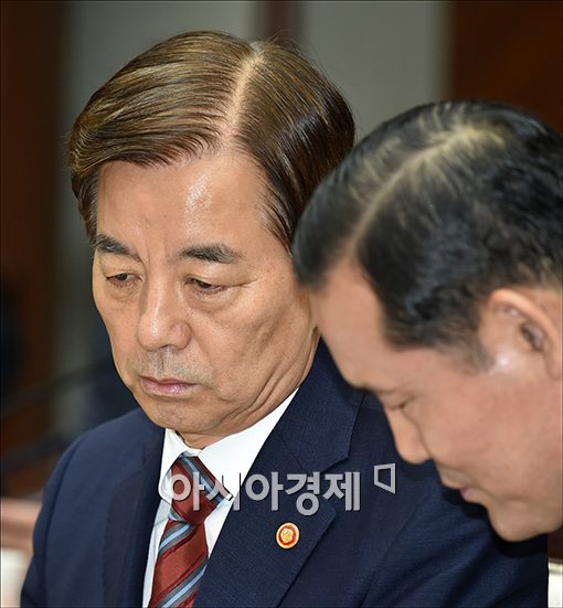 [아시아경제 윤동주 기자] 한민구 국방부 장관이 7일 서울 용산구 국방부에서 열린 국회 국방위원회 국방부에 대한 국정감사에서 박대섭 인사복지실장과 의견을 나누고 있다.윤동주 기자 doso7@asiae.co.kr<ⓒ세계를 보는 창 경제를 보는 눈, 아시아경제(www.asiae.co.kr) 무단전재 배포금지>