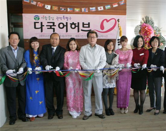 그리고 ‘링크앤런’은 고학력의 베트남 이주여성을 강사로 양성해 베트남어가 필요한 개인 또는 회사와 연결하는 사업을 진행하며, ‘에듀1번지’는 중국어 등 외국어교육과 다문화 가정의 경제적 활동을 지원하기 위한 바리스타 교육을 펼친다. 입주기업 중 하나인 '이지커뮤니케이션’은 한국어 보급을 위한 교육과 스피치커뮤니케이션 능력 향상을 위한 아카데미 등을 진행한다. 지난 6일에는 캄보디아 참사관을 비롯 다문화관련 주민과 결혼이민자 등이 참여한 가운데 ‘관악다국어 허브센터’ 개소식 행사를 가졌다. 유종필 구청장은 “‘관악다국어 허브센터’는 언어교육 뿐 아니라 결혼이주 여성의 취업까지 지원하는 전국 최초의 종합교육 센터”라며 “사회적기업간 연계를 통해 좋은 효과를 거둘 수 있을 것”이라고 말했다. 서울시 자치구 중 세 번째로 많은 7300여 명의 다문화가정이 거주하고 있는 관악구는 이들의 안정적인 정착을 돕기 위한 다문화가족지원센터를 운영하고 있다. 결혼이주여성을 위한 한국어교육, 서울대 재학생과 다문화가정의 자녀를 연결한 ‘멘토-멘티’, 청소년기 부모교육 등 다양한 프로그램을 열고 있다. 그밖에도 조원도서관에 다문화열람실을 설치해 다문화가정을 위한 전시회와 독서프로그램을 운영하고 있으며, 매년 주민과 함께하는 다문화축제를 여는 등 다문화가족과 주민간 화합을 위한 다양한 사업을 펼쳐 주민들에게 좋은 반응을 얻고 있다. 박종일 기자 dream@asiae.co.kr<ⓒ세계를 보는 창 경제를 보는 눈, 아시아경제(www.asiae.co.kr) 무단전재 배포금지>